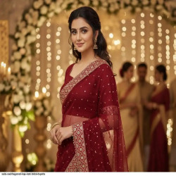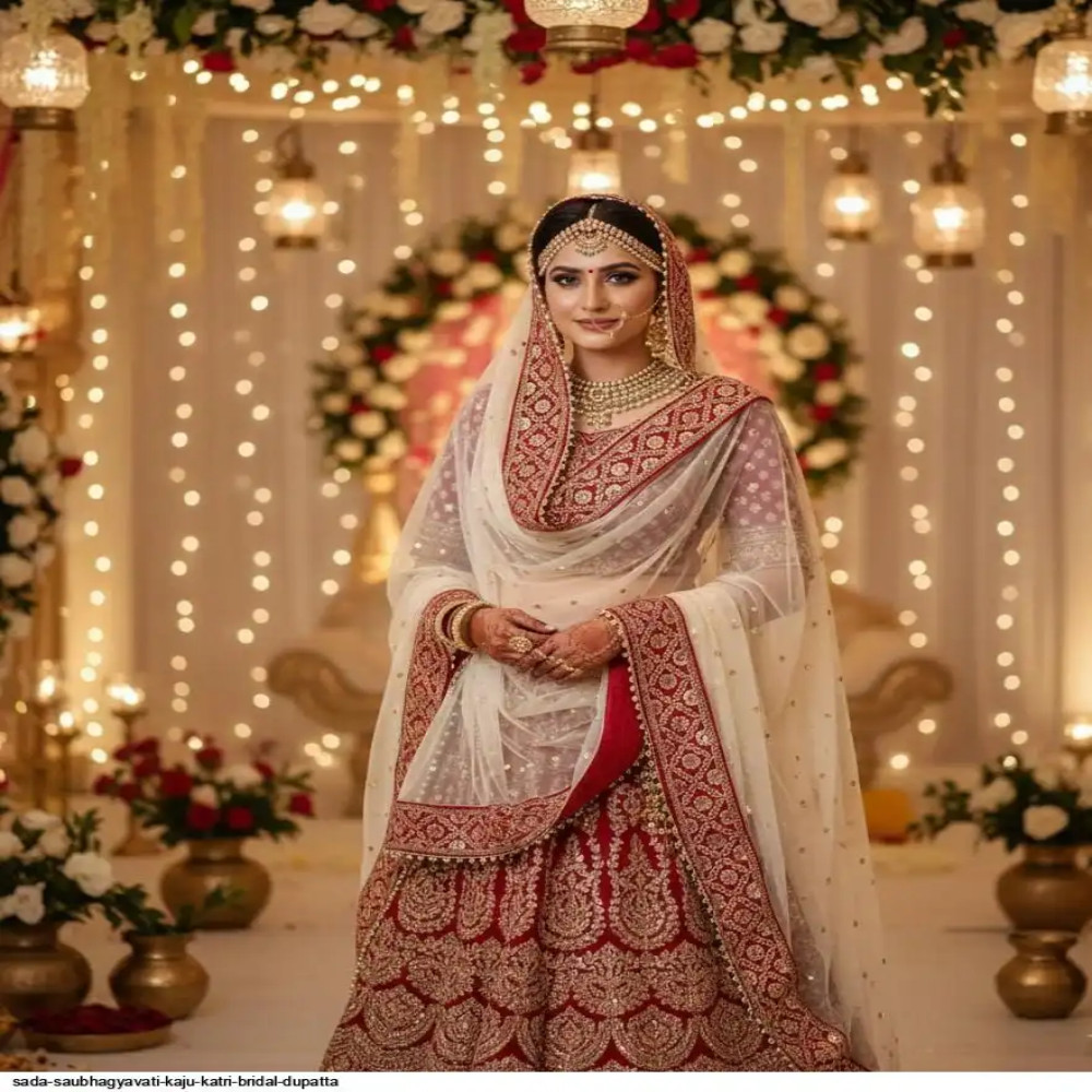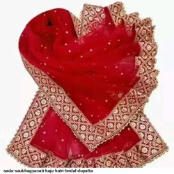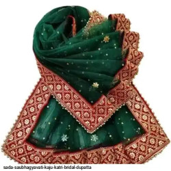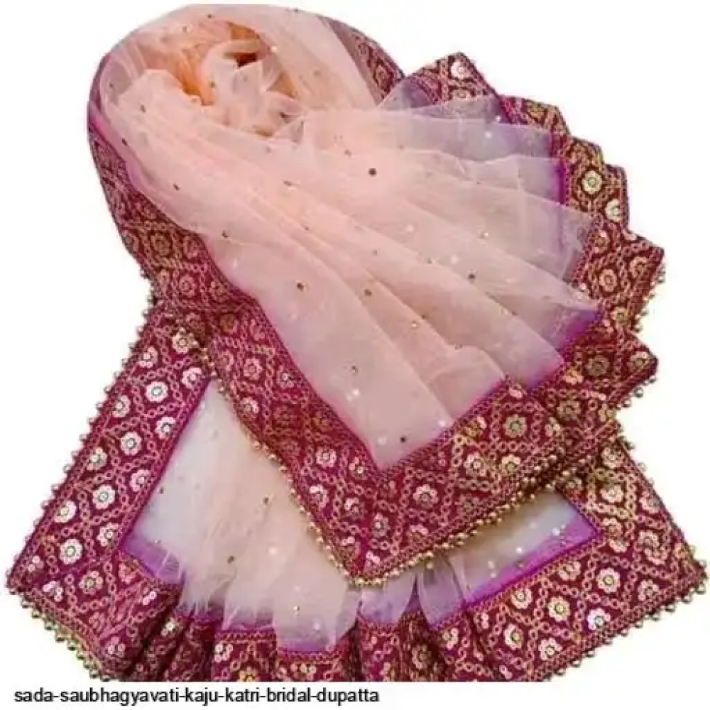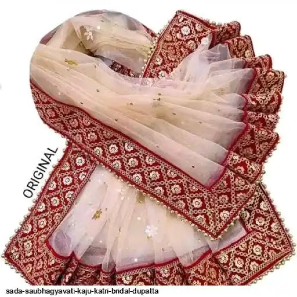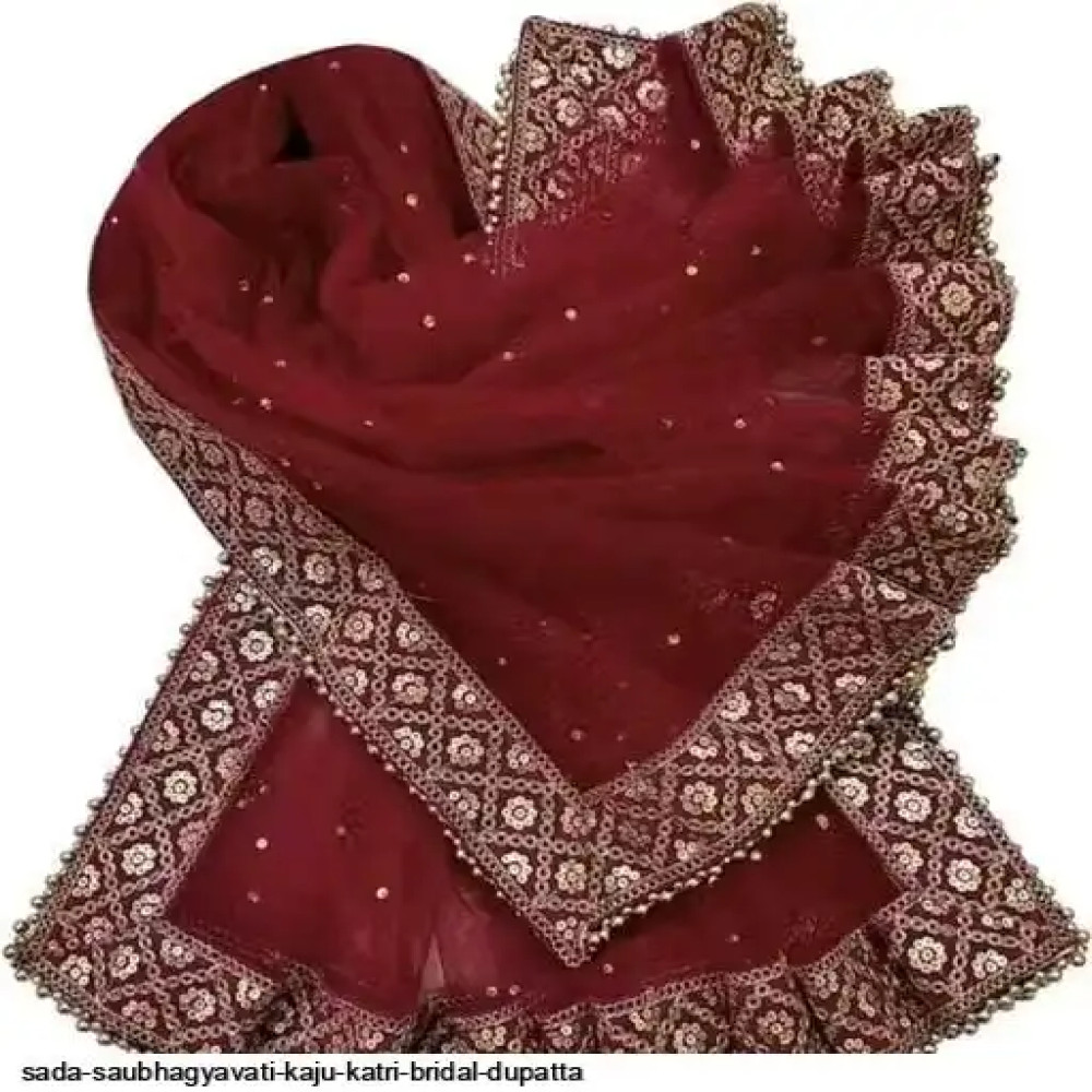 SADA SUBHAGYAVATI BRIDAL DUPATTA KAJU KATRI DUPPATA Fabric: Net Pattern: Embroidery Sequence work Size: Free Size (Length:-2.00 m) ( 4 side border less) Color : Maroon,Red, Cream,Green,Pink SADA SAUBHAGYAVATI DUPATTA