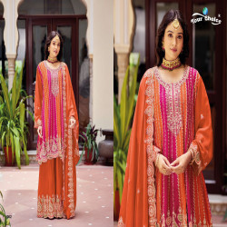 Step into elegance with this ORRA Red Designer Chinon Embroidered Suit, crafted to give you a rich and royal look. Made from premium pure chinon fabric, this ready-to-wear outfit features intricate embroidery work that enhances its luxurious appeal. The stylish peplum design adds a modern touch while maintaining traditional charm. Perfect for parties, weddings, festivals, and special occasions, this outfit ensures you stand out with confidence and grace. Product Highlights: • Fabric: Pure Chinon • Work: Embroidery Work • Style: Peplum Designer Set • Ready to Wear • Premium Quality Finish ✅ FILTERS Fabric: Chinon Sleeve: 3/4 Sleeve Pattern: Embroidered Fit: Regular Fit Occasion: Party / Festive Wear